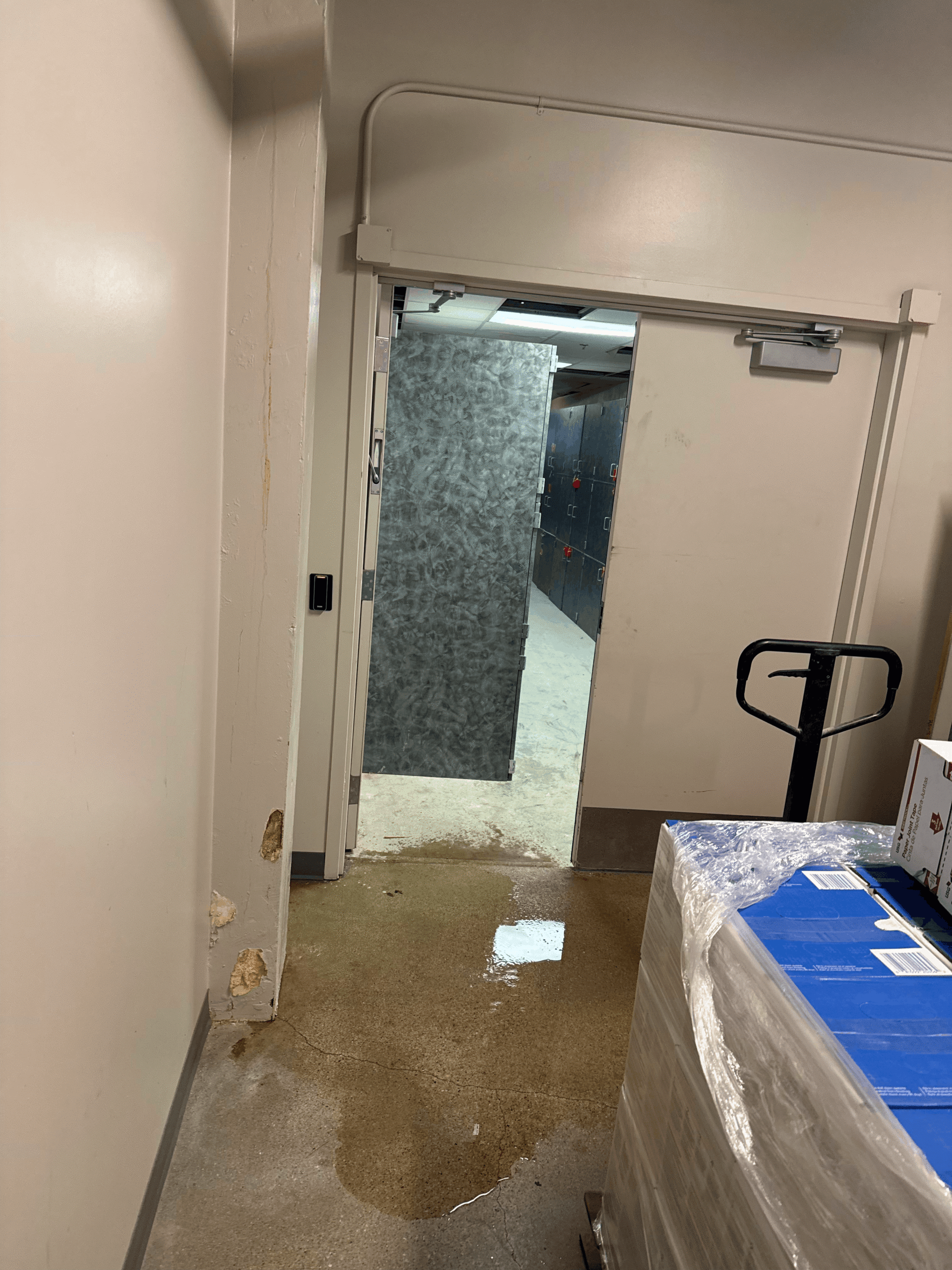 However, the tunnel exists in the no man’s land between the two renovation projects. It belongs to neither and was not included in either budget. This didn’t occur to anyone until water began pooling under the door on the Kimball side. This is how the lockers in the tunnel have risen to become the most urgent need for the bands. We were able to find temporary digs for the instruments (picture 24 sousaphones in an opera dressing room), but we need the tunnel storage to be fully functional by the time the instrument inventory moves back into Westbrook this spring.